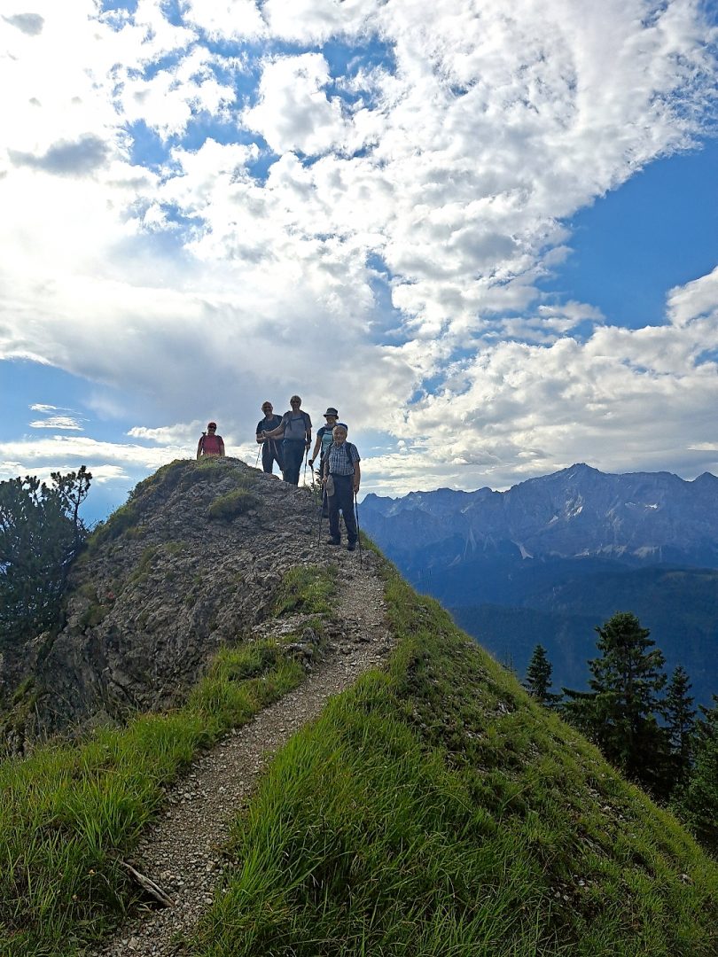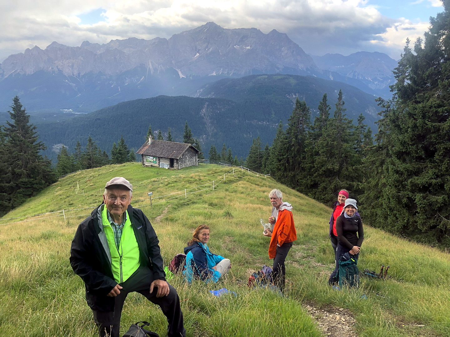 Auch als wir das Felsgelände hinter uns gelassen hatten, ging es weiterhin auf sehr steilem Steig durch den Wald bergab. Zwischendurch lehrte uns Margot wie immer wieder etwas über die Bergkräuter und Blumen, was immer sehr bereichernd ist. Um ca. 14:30 Uhr waren wir dann wieder zurück am Auto von unserer Rundtour auf den Schellschlicht. Gewitter mussten wir dank unseres frühen Startes auch nicht erleben. Nun machten wir uns auf den Heimweg mit einer kleinen, aber wohlverdienten Kaffeepause in Garmisch-Partenkirchen, bevor es endgültig wieder nach Grafing ging. Es war eine sehr schöne Tour, mit tollen Aus-, Tief- und Rundumblicken und vor allen Dingen sehr einsam, was in der Gegend rund um die Zugspitze nicht so häufig zu finden ist – die etwas längere Fahrt dahin hat sich also gelohnt!